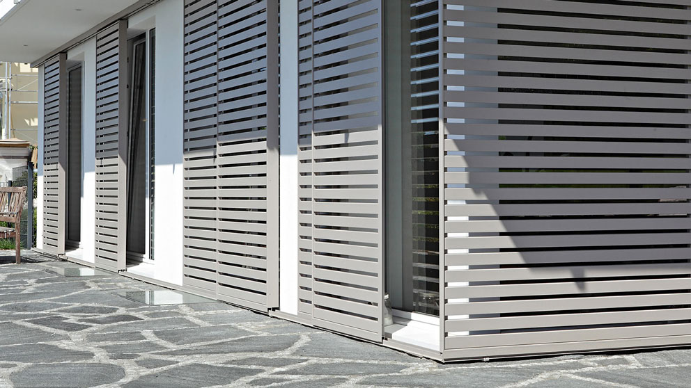 Da bei Neubauten in der Regel große Fensterflächen mit einer Verschattungsmöglichkeit zu versehen sind, bestimmen die Schiebeläden einen Großteil der Fassade und werden zum dominierenden Gestaltungselement. Das Interieur lässt sich mit Schiebeläden sowohl vor zu hoher Sonneneinstrahlung als auch vor neugierigen Blicken mit unterschiedlichen Füllungen schützen.