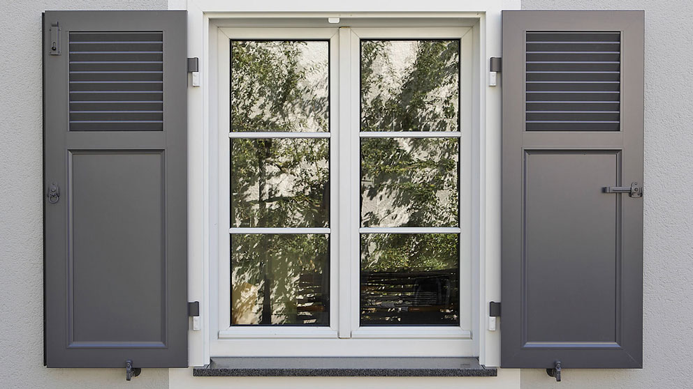 EHRET Klappläden setzen Akzente und Maßstäbe, die im Einklang mit der Architektur ein harmonisches und einzigartiges Erscheinungsbild schaffen.